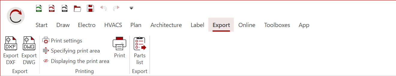 By default, the RED CAD APP always creates a PDF file and does not trigger physical printing on paper. Printing on paper is performed using the installed PDF software.