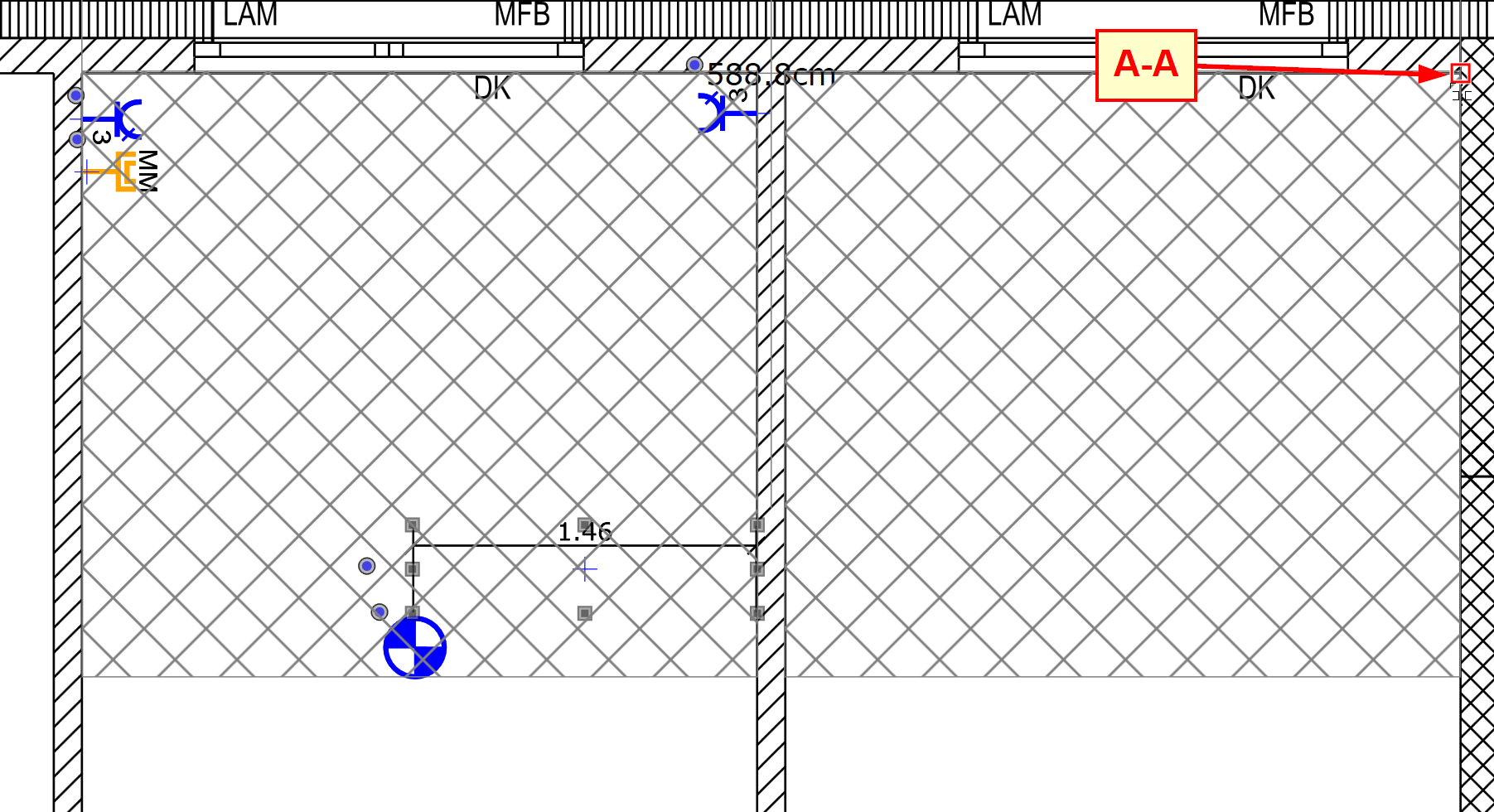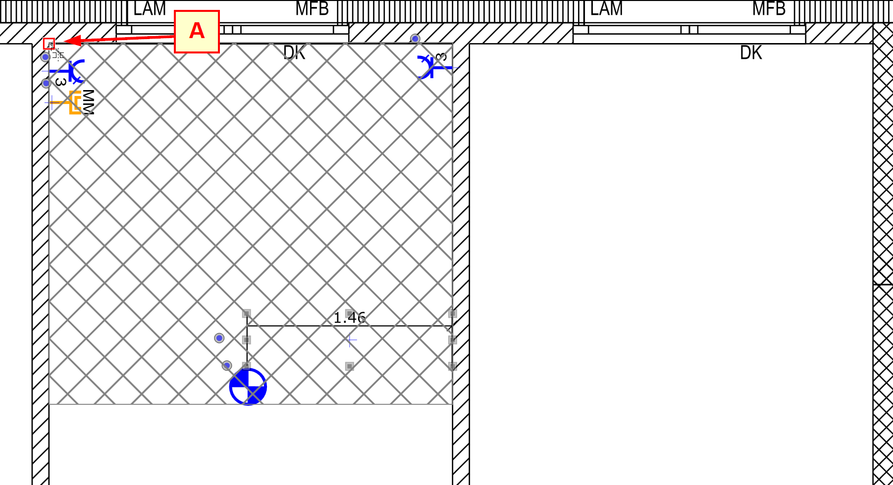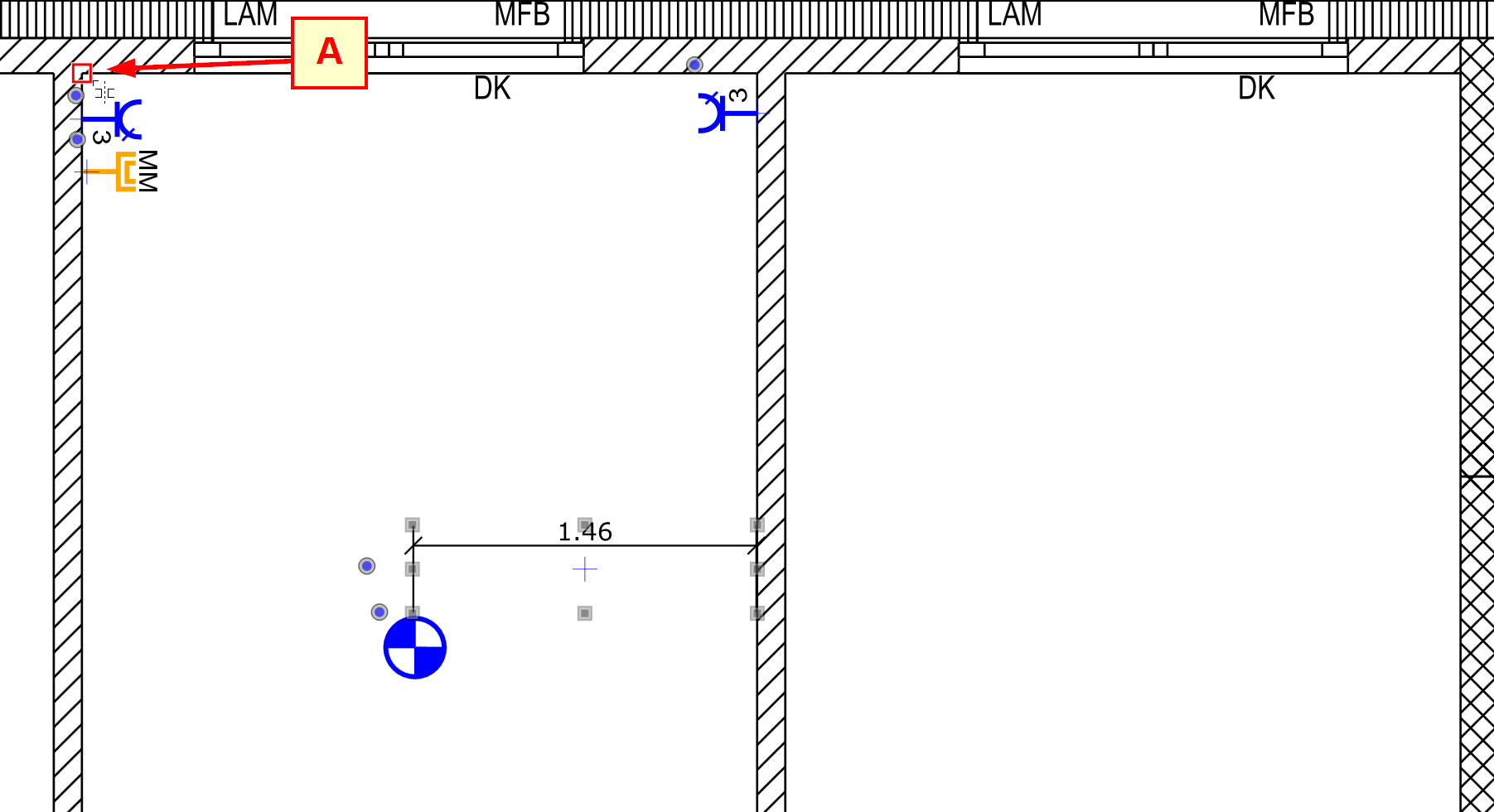 Move the mouse pointer to the end point mirror or rotation point (A-A) and confirm with left click.